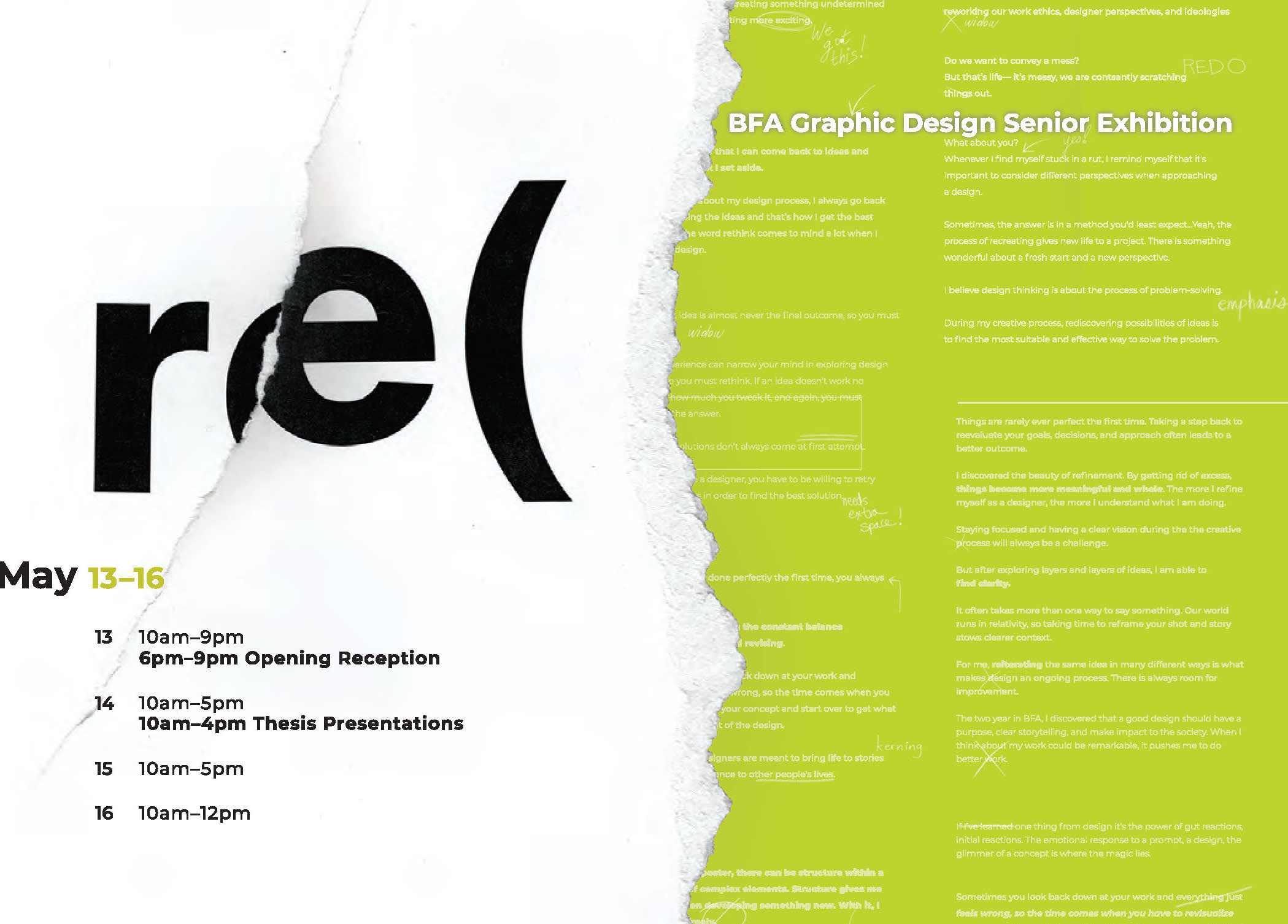 Additionally, we emphasize the importance of user experience and interaction with visual design. Graphic design is more than simply knowing how to draw; it’s more than self-expression; it’s having the ability to understand every aspect of the world. From packaging, to branding, to everything that happens on a screen, our program strives to provide students with the fundamental toolbox that prepares them for the constantly changing needs of society.
